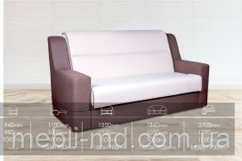 Серед них — крихітка "Бонд", завширшки 1550 мм і завдовжки 1030 мм. Це в складеному вигляді. Розклавши диван, ви отримуєте місце сну, розміром 1150х1910 мм. Малютка трансформується завдяки висувному механізму "фаворит", який використовується через витягування на себе спинки дивана. Так сидіння збільшується втричі. Під сидінням диванчика захований білизняний ящик. Якщо ви хочете наділити диван ще однією практичною деталлю, замовте для підлокітників тверді накладки з декоративної плити МДФ. Тоді підлокітники слугуватимуть ще й поличкою для чашки або телефона. Малютка "Бонд" буде гарний і для спалень, і для невеликих віталень, і в маленьких будинках, де, крім ліжка, ви хочете помістити в кімнаті ще одне запасне спальне місце. Цей невеликий диван придатний для щоденного використання. Завдяки якісному каркасу з дерева, а також якісному ортопедичному наповнювачу з пружинних блоків і м'яких матеріалів, диван міцний і зручний, вірно слугуватиме багато років.